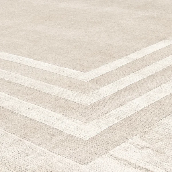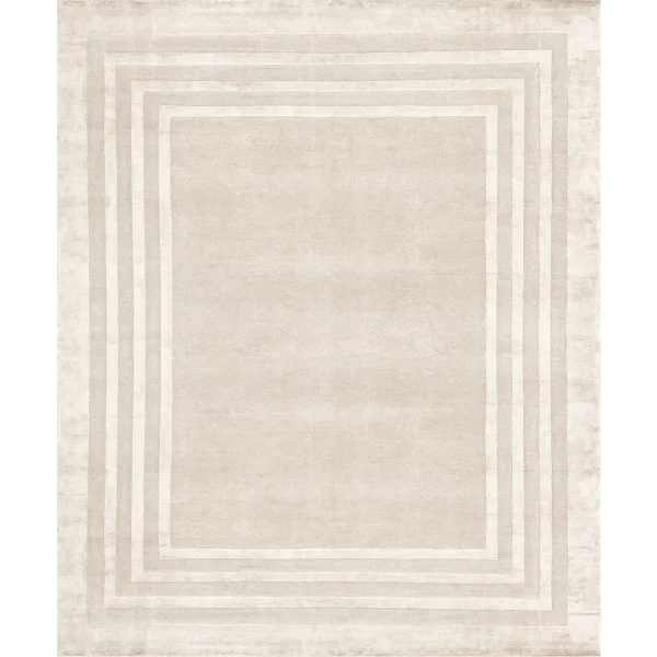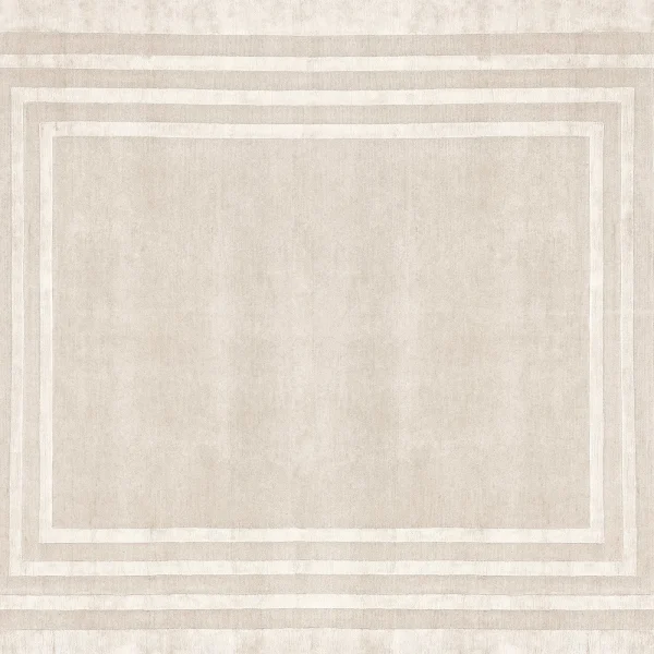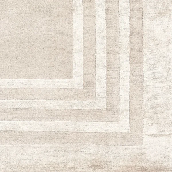 Crafted with the comforting touch of Himalayan wool and the luminous allure of fine silk, this inviting rug boasts a base standing at 0.05cm in height. Its understated yet elegant design, reaching a height of 0.07cm, showcases concentric frames exuding quiet sophistication. Hand-knotted by skilled Nepalese artisans, this piece features a total blend of 20% silk and 80% wool, delicately shaded in tones of beige and taupe. Offering a density of 152,000 knots per square meter, this rug presents a myriad of customization options, along with the availability of an anti-stain treatment. For further details and pricing, please consult the Concierge.
