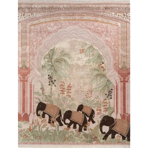 Inde Rose integrates art, architecture, design, and nature into grand-scale art pieces that harmonize and forge connections between spaces, bodies, and the appreciation of beauty and luxury. Each rug in the collection is hand-knotted to perfection using the finest silk, elevating the historic tradition of coordinated décor elements with its paired rugs.