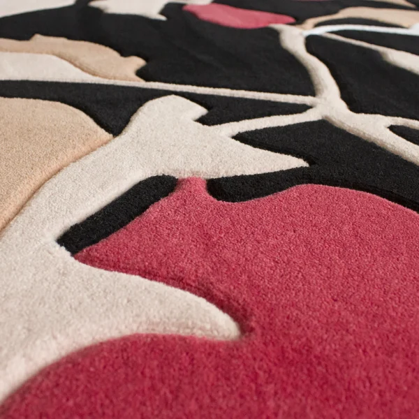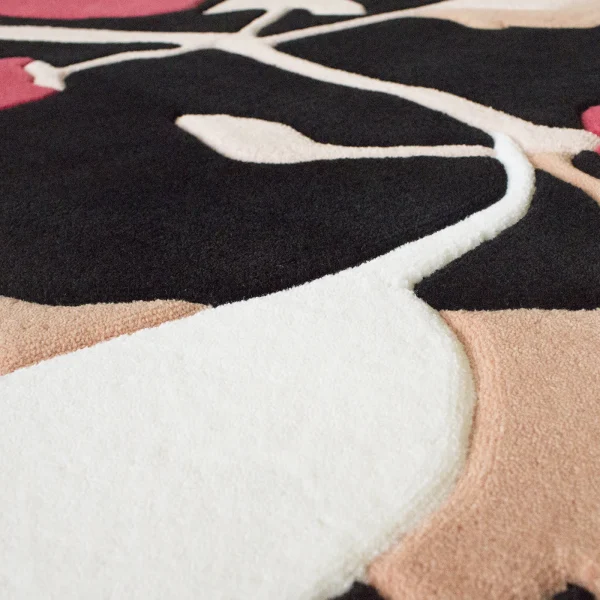 Crafted from a drawing by Serena Confalonieri, this elegant round rug showcases a captivating floral motif inspired by Japanese artistry. The vibrant hues of white, pink, and fuchsia contrast beautifully against the bold black background, adding a modern and lively touch to any space. Skillfully crafted by expert hands using luxurious virgin wool sourced from New Zealand, this decorative piece exudes quality and sophistication. With a fireproof class of Cfl-s1, it ensures safety without compromising on style. For those seeking a personalized touch, both measurements and colors can be customized to suit your preferences. Please consult with our Concierge for further details and options.