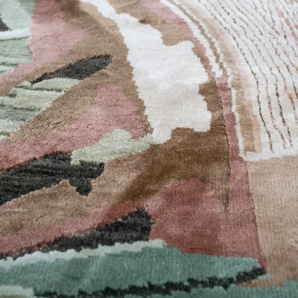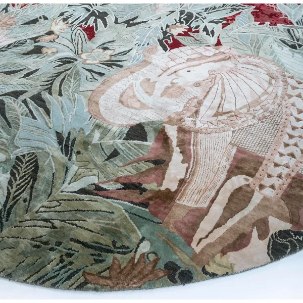 Inde Rose integrates art, architecture, design, and nature into grand-scale art pieces that harmonize and forge connections between spaces, bodies, and the appreciation of beauty and luxury. Each rug in the collection is hand-knotted to perfection using the finest silk, elevating the historic tradition of coordinated décor elements with its paired rugs.