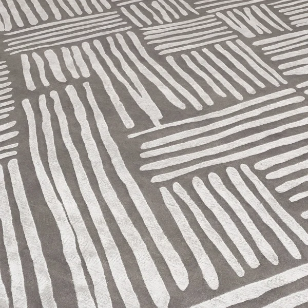 The captivating design of this rug is characterized by a series of irregular beige stripes gathered in sections that diverge in various directions. Hand-knotted in Nepal by local master weavers using a blend of 50% silk and 50% Himalayan wool, it showcases a colorful decoration standing at 0.07cm high over a taupe base measuring 0.05cm high, boasting a total density of 152,000 knots per square meter. For pricing details regarding the anti-stain treatment and to explore the wide array of customization options available, please reach out to the Concierge.